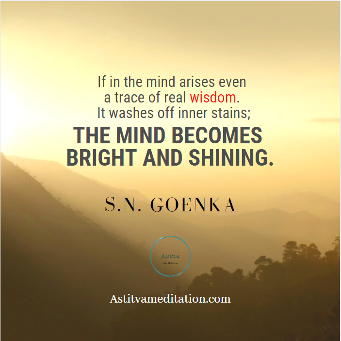 A trace of real wisdom ~ S.N. GoenkaKapil PiparaiyaNov 7, 20201 min readIf in the mind arises even a trace of real wisdom. It washes off inner stains; The mind becomes bright and shining - S.N. Goenka