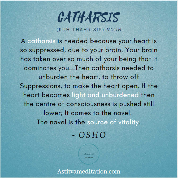 A catharsis is needed because your heart is so suppressed, due to your brain. Your brain has taken over so much of your being that it dominates you... Then catharsis is needed to unburden the heart, to throw off suppressions, to make the heart open. If the heart becomes light and unburdened then the center of consciousness is pushed still lower; it comes to the navel. The navel is the source of vitality.