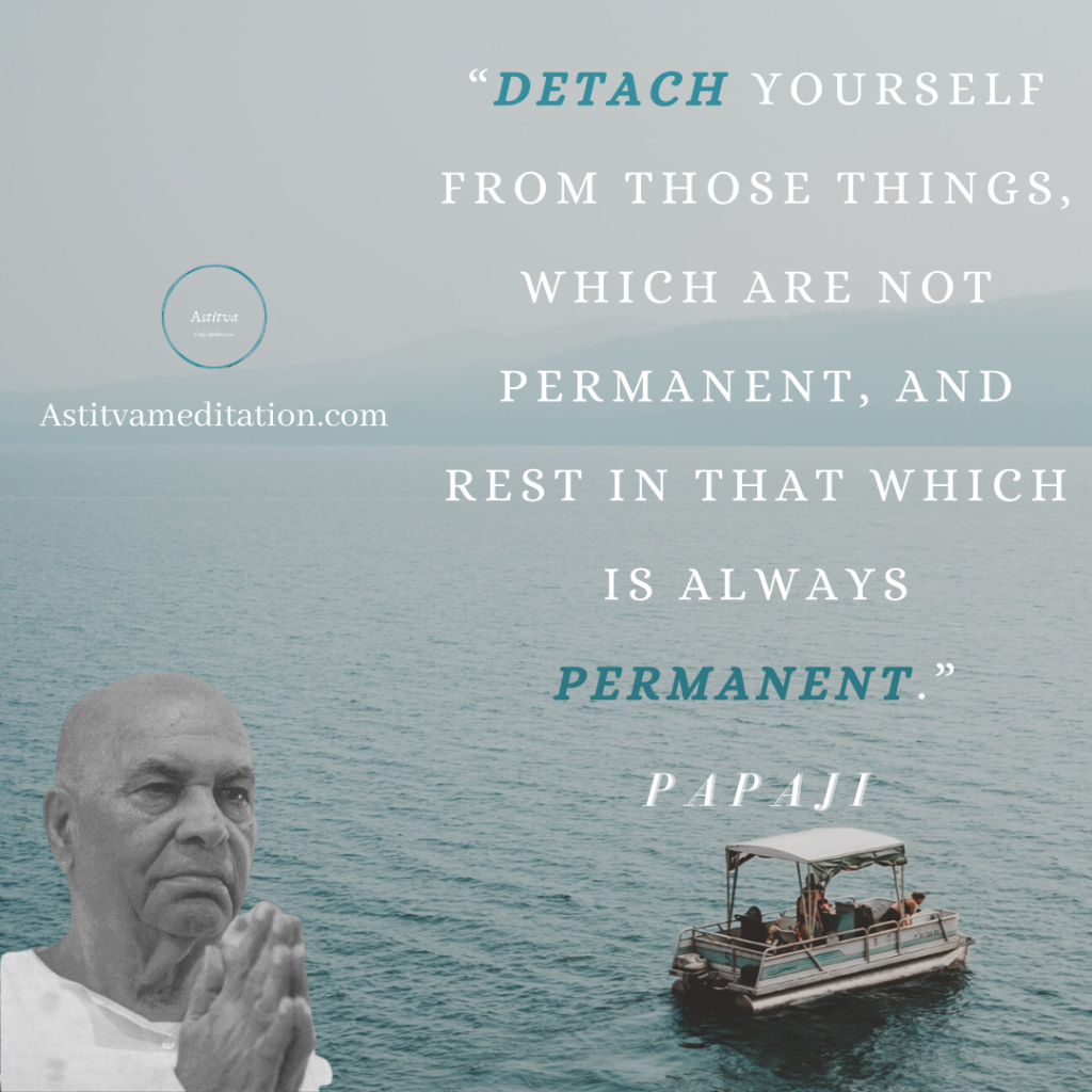 Detach yourself ~ PapajiKapil PiparaiyaNov 8, 20201 min read“Detach yourself from those things, which are not permanent, and rest in that which is always permanent.” – Papaji