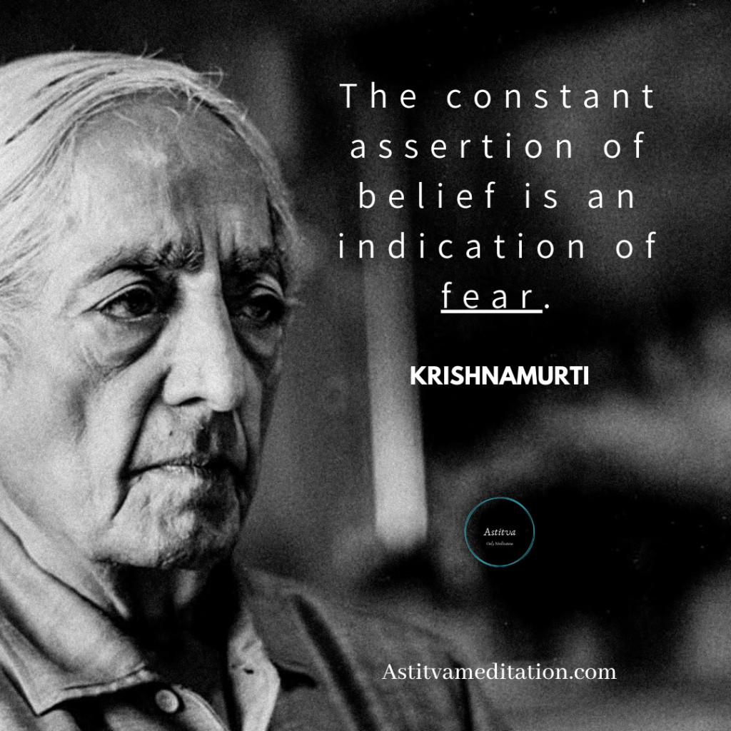 Fear ~ KrishnamurtiKapil PiparaiyaNov 30, 20201 min readThe constant assertion of belief is an indication of fear. — KRISHNAMURTI