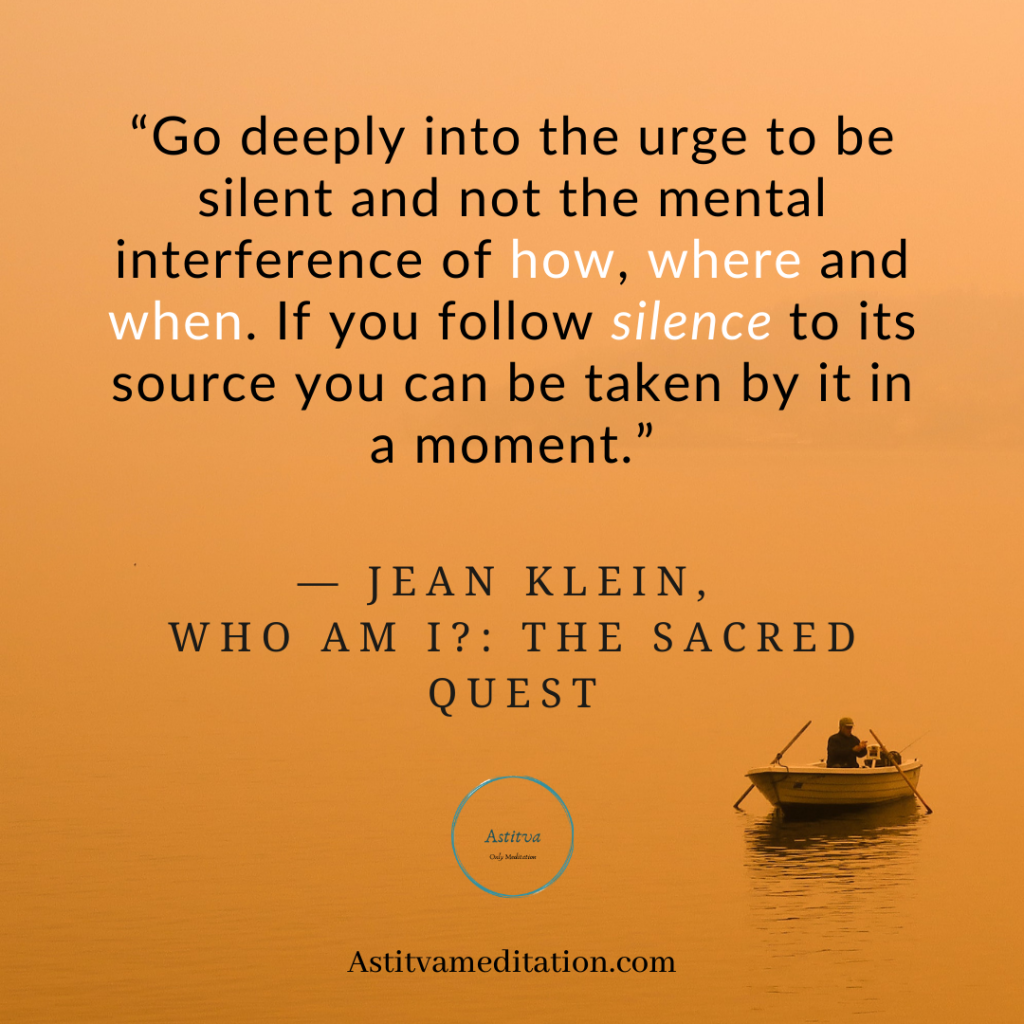 “Go deeply into the urge to be silent and not the mental interference of how, where and when. If you follow silence to its source you can be taken by it in a moment.”