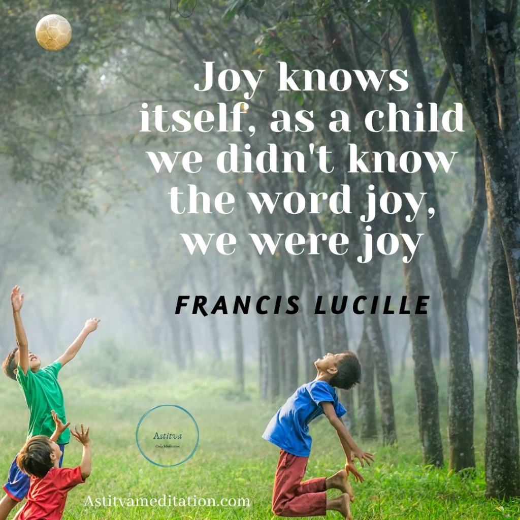 Joy ~ Francis LucilleKapil PiparaiyaNov 16, 20201 min readJoy knows itself, as a child we didn't know the word joy, we were joy - Francis Lucille