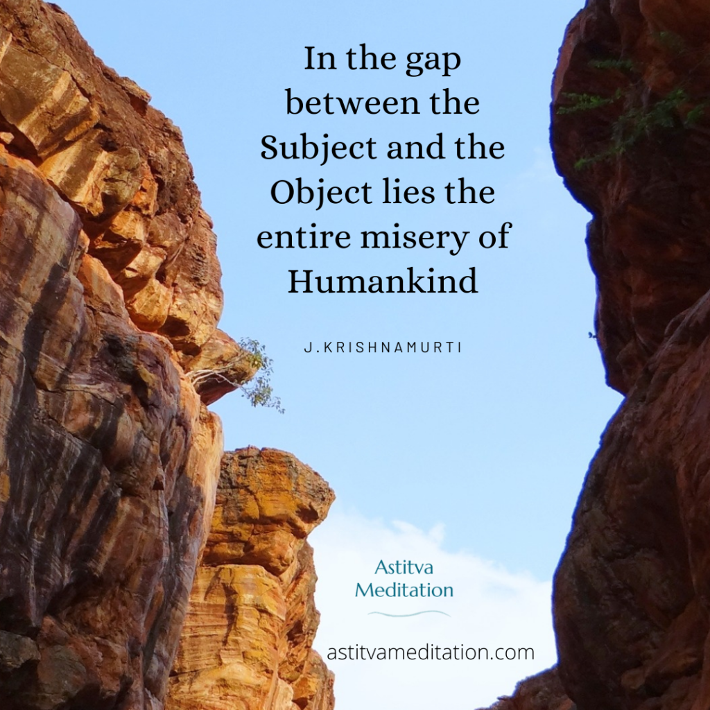 Krishnamurti ~ In the gap between the Subject and the Object lies the entire misery of humankindKapil PiparaiyaMay 9, 20211 min readIn the gap between the Subject and the Object lies the entire misery of humankind ~ Krishnamurti