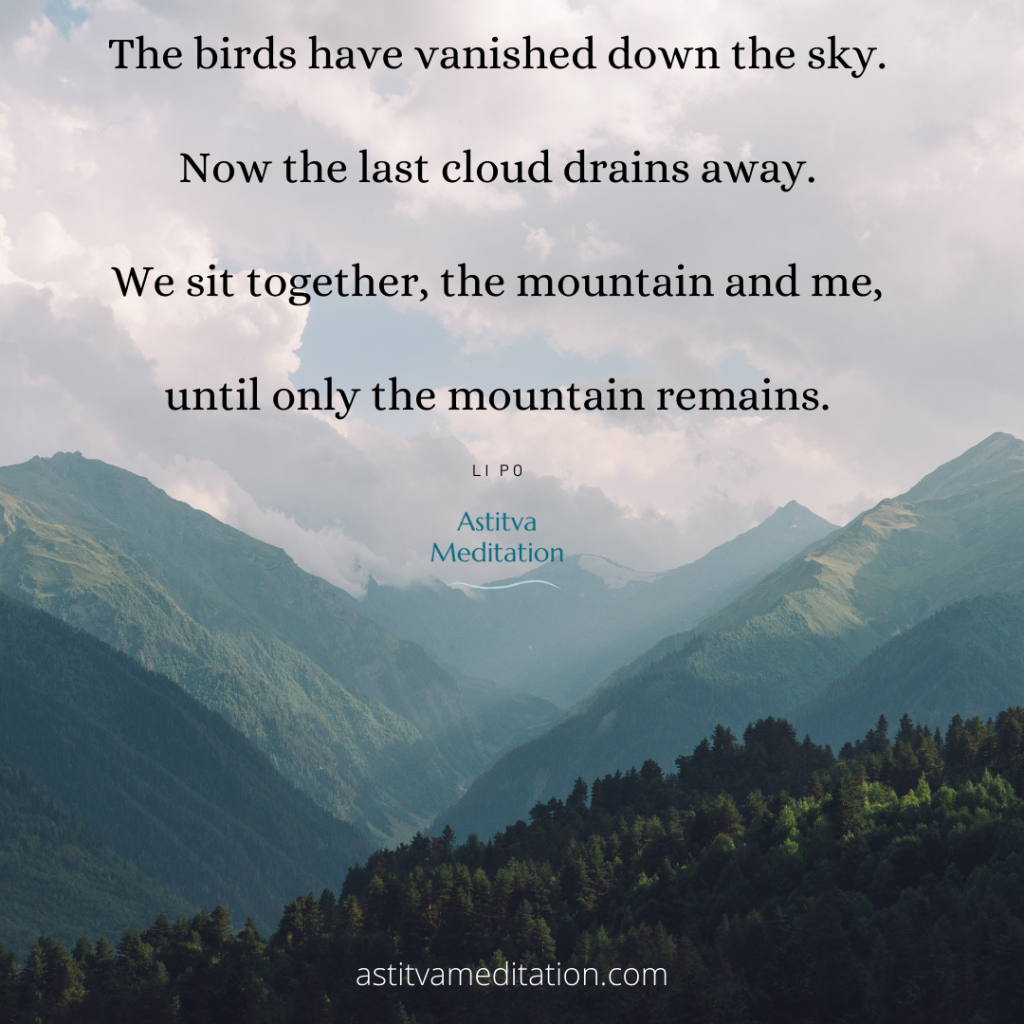Li Po ~ Witnessing ~ Until only the Mountain remainsKapil PiparaiyaMay 9, 20211 min read“The birds have vanished down the sky. Now the last cloud drains away. We sit together, the mountain and me, until only the mountain remains.” Li Po