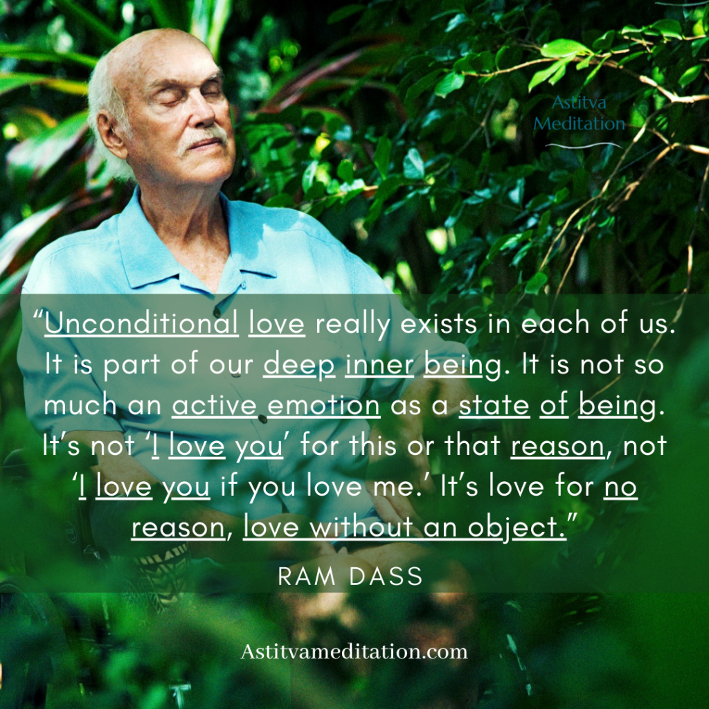 “Unconditional love really exists in each of us. It is part of our deep inner being. It is not so much an active emotion as a state of being. It’s not ‘I love you’ for this or that reason, not ‘I love you if you love me.’ It’s love for no reason, love without an object.”