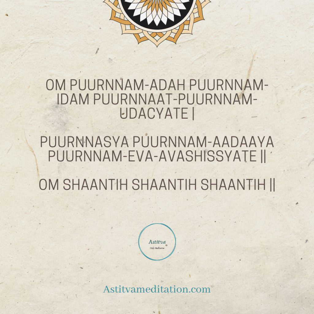 Om Shantih Shantih ShantihKapil PiparaiyaOct 29, 20201 min readOm puurannam-adah puurnnam-idam puurnnaat-puurnnam-udacyate |Puurnnasya puurnnam-Aadaaya puurnnam-Eva-Avashissyate ||Om shaantih shaantih shaantih ||