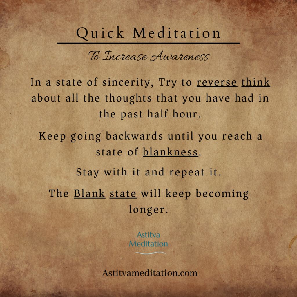 In a state of sincerity, Try to reverse think about all the thoughts that you have had in the past half hour. Keep going backwards until you reach a state of blankness, Stay with it and repeat it -