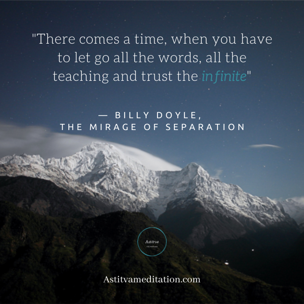 Trust the infinite ~ Billy DoyleKapil PiparaiyaNov 8, 20201 min read"There comes a time, when you have to let go all the words, all the teaching and trust the infinite." ― Billy Doyle, The Mirage of Separation
