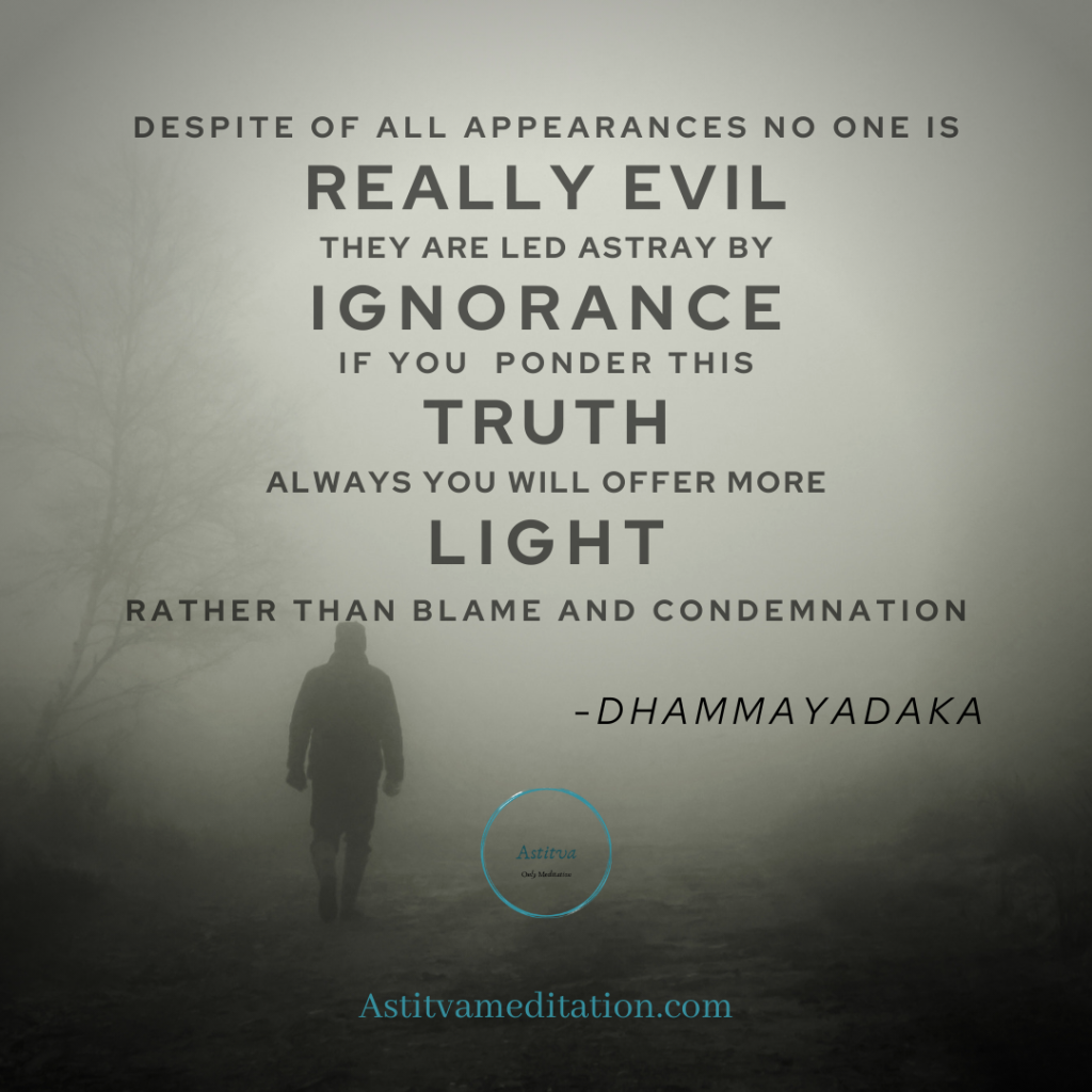 Despite all appearances, no one is really Evil. They are led astray by ignorance. If you ponder this truth, always you will offer more light rather than blame and condemnation.