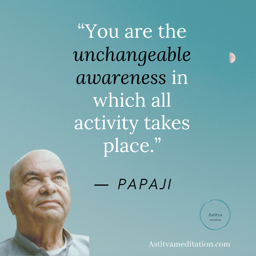 Unchangeable awareness ~ PapajiKapil PiparaiyaNov 8, 20201 min read“You are the unchangeable Awareness in which all activity takes place.”– Papaji