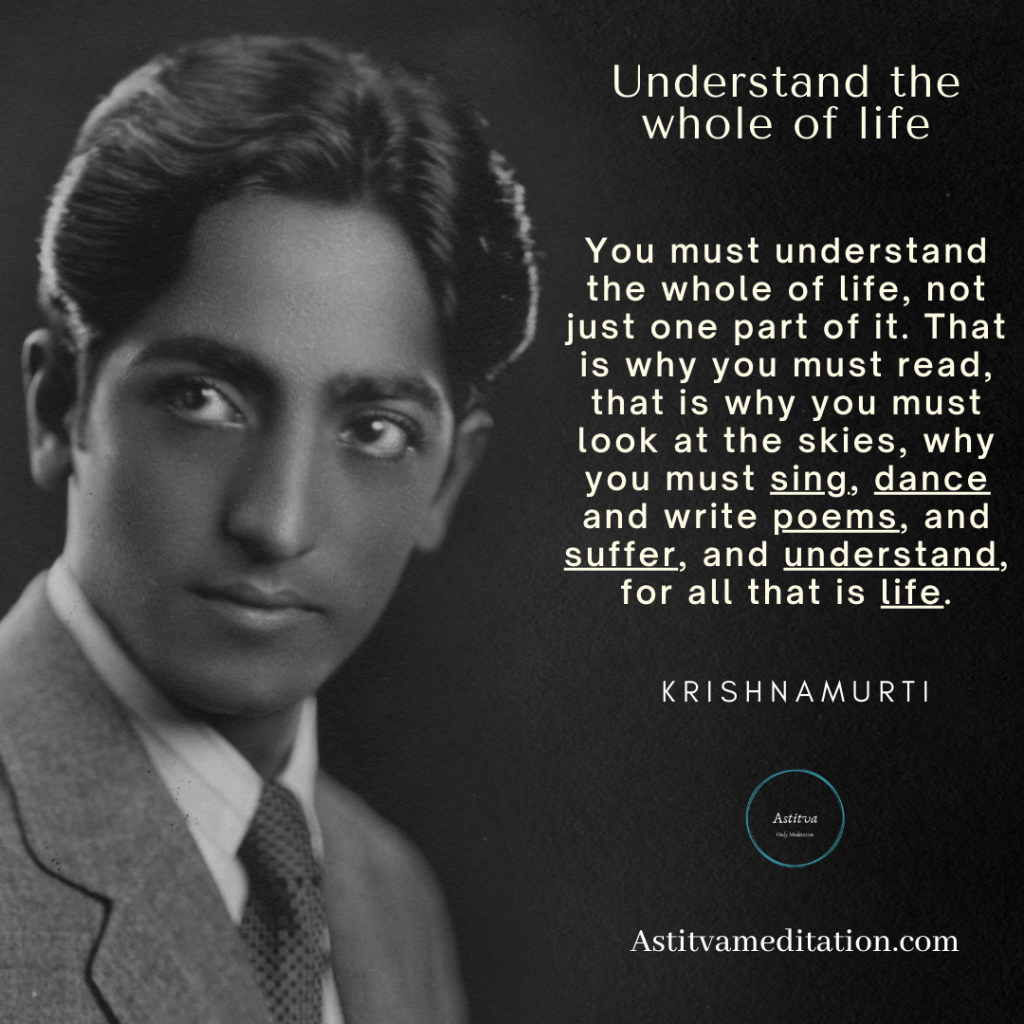 Understand the whole of life ~ Krishnamurti