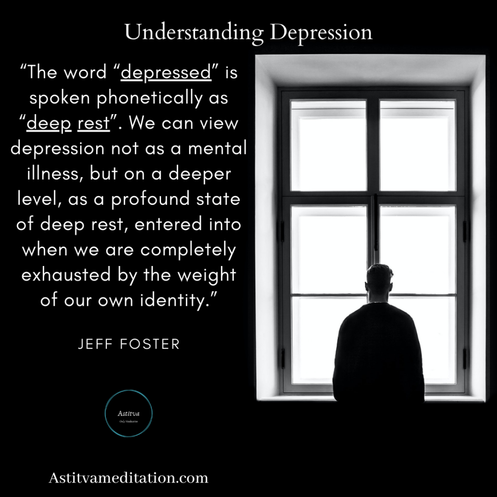 “The word “depressed” is spoken phonetically as “deep rest”. We can view depression not as a mental illness, but on a deeper level, as a profound state of deep rest, entered into when we are completely exhausted by the weight of our own identity.”