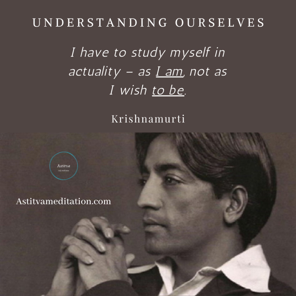 Understanding Ourselves ~ KrishnamurtiKapil PiparaiyaNov 30, 20201 min readI have to study myself in actuality – as I am, not as I wish to be.—KRISHNAMURTI