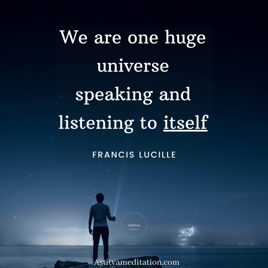 We are the universe ~ Francis LucilleKapil PiparaiyaNov 16, 20201 min readWe are one huge universe speaking and listening to itself - Francis Lucille