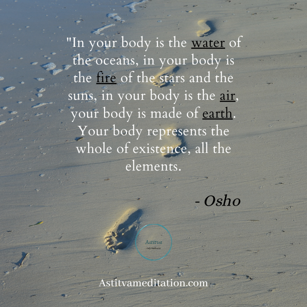 "In your body is the water of the oceans, in your body is the fire of the stars and the suns, in your body is the air, your body is made of earth. Your body represents the whole of existence, all the elements."